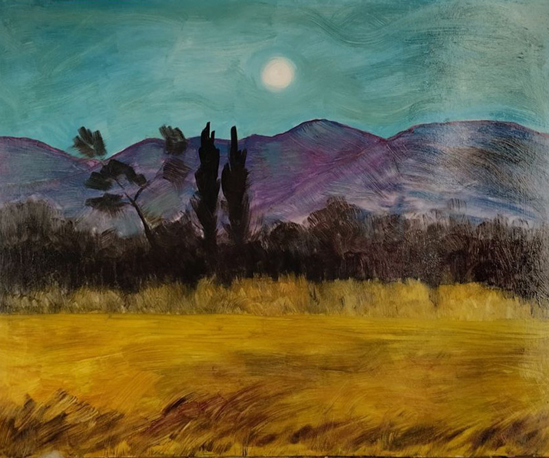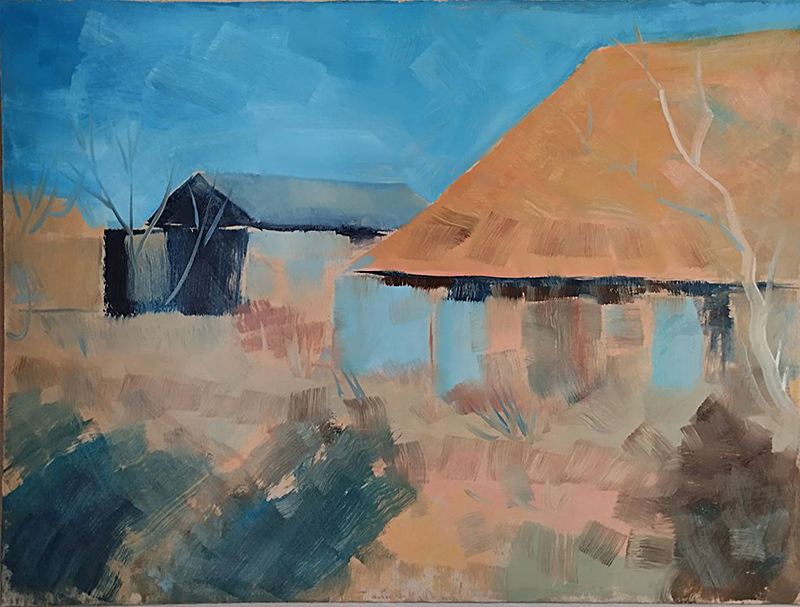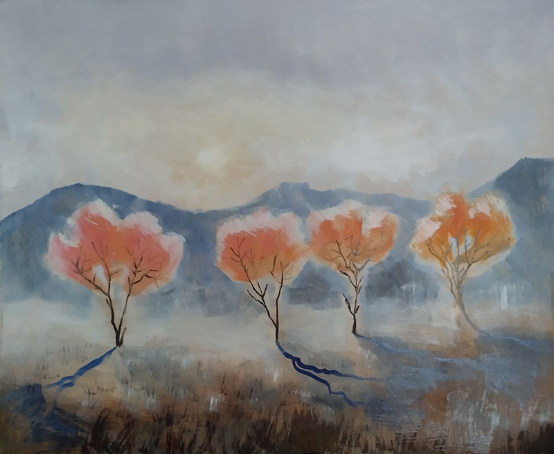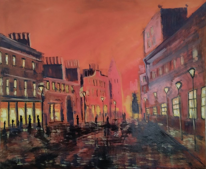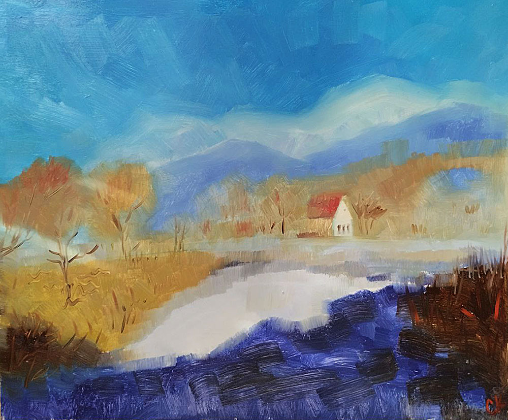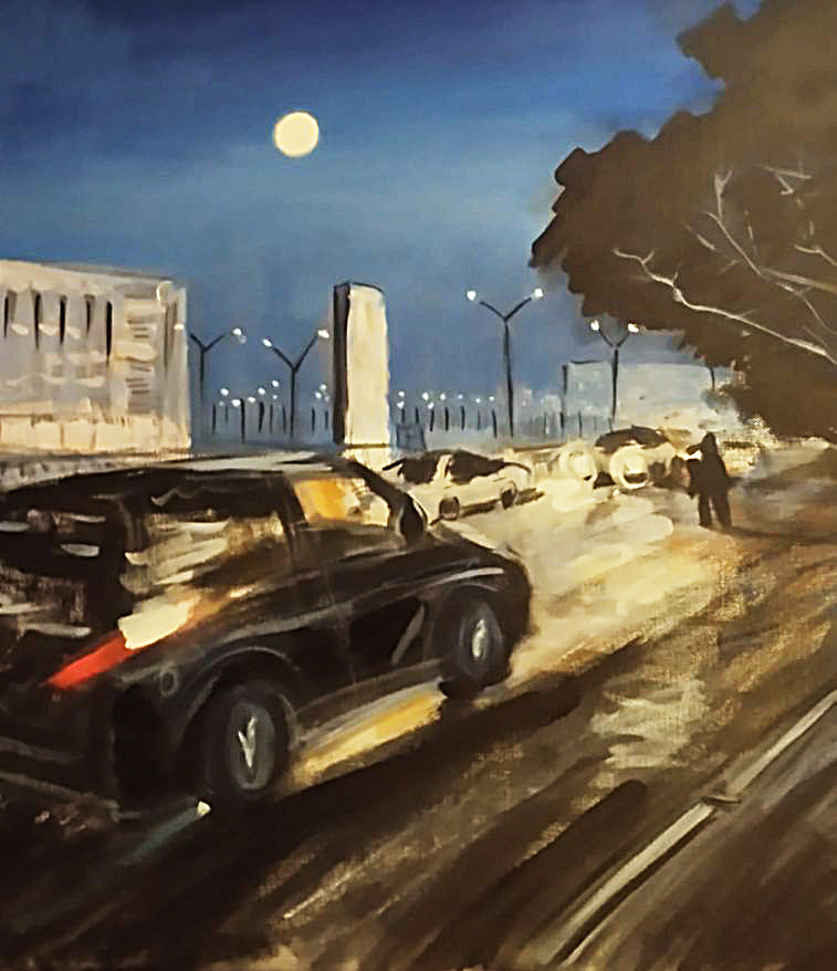 Холст на подрамнике, масло, маркер; 50*50 см