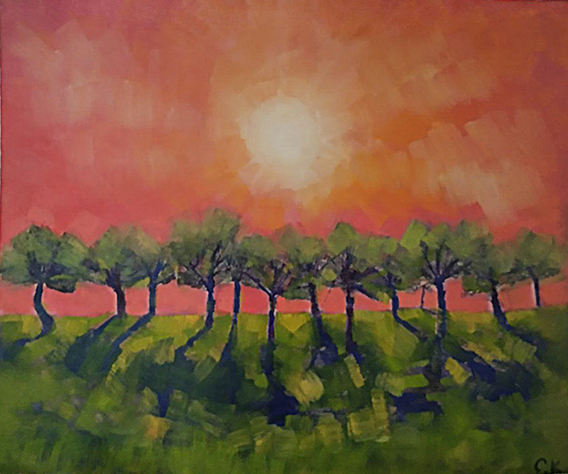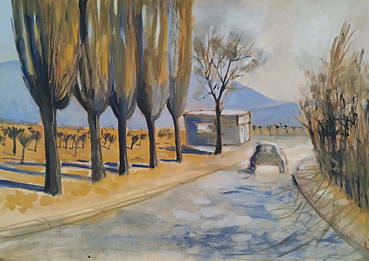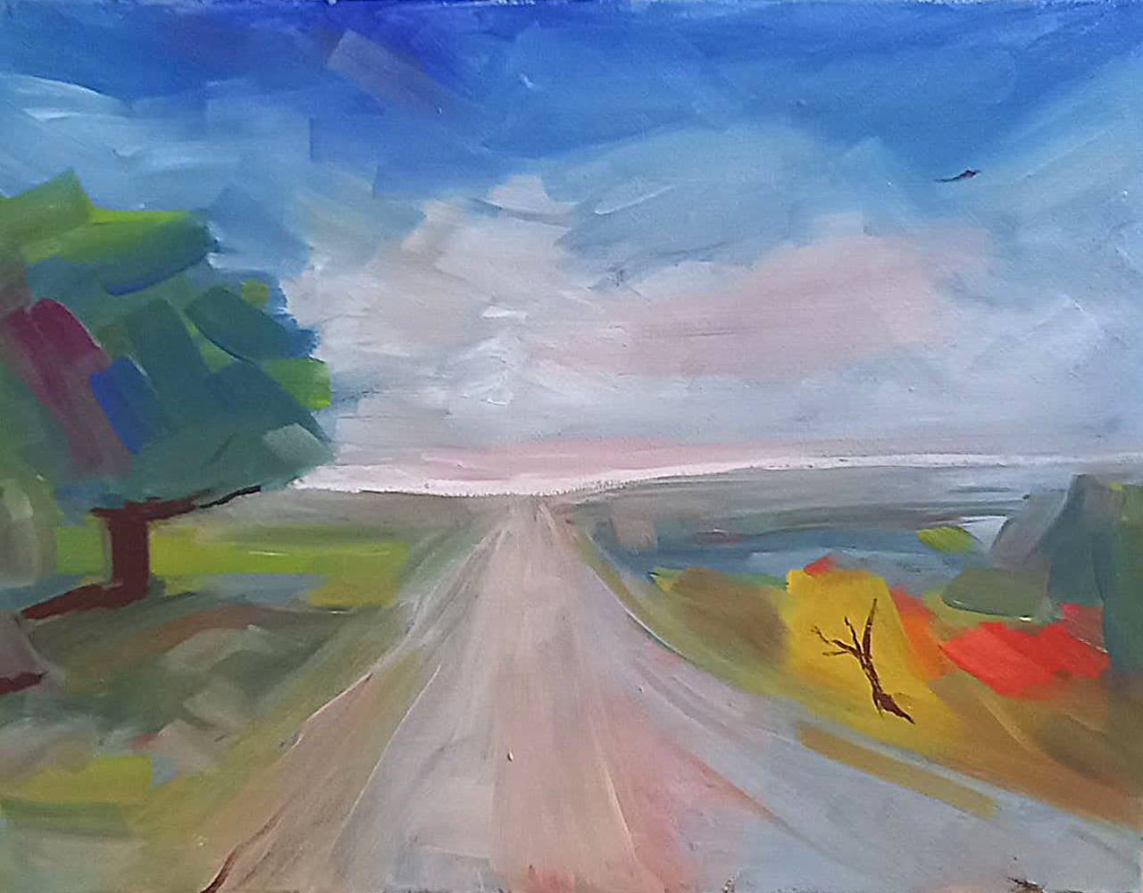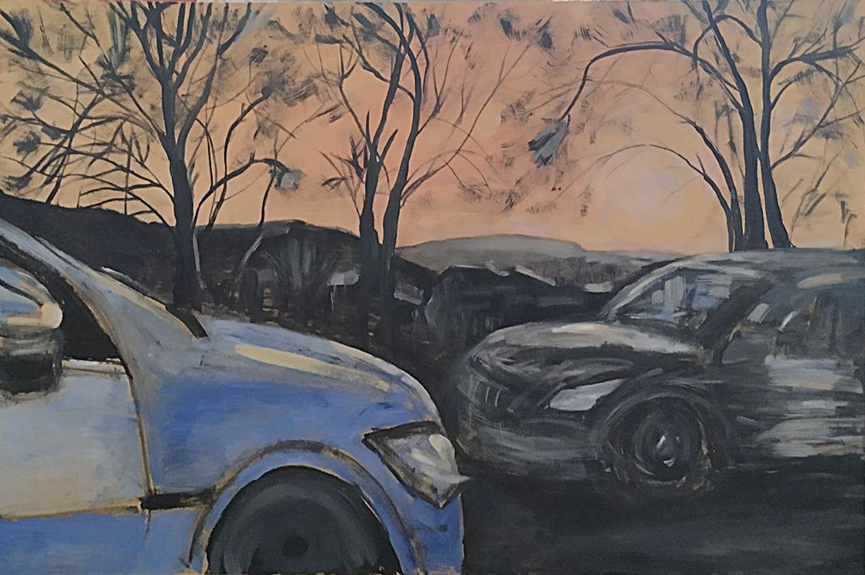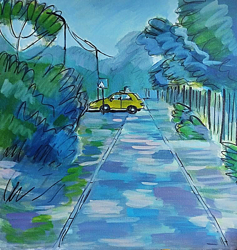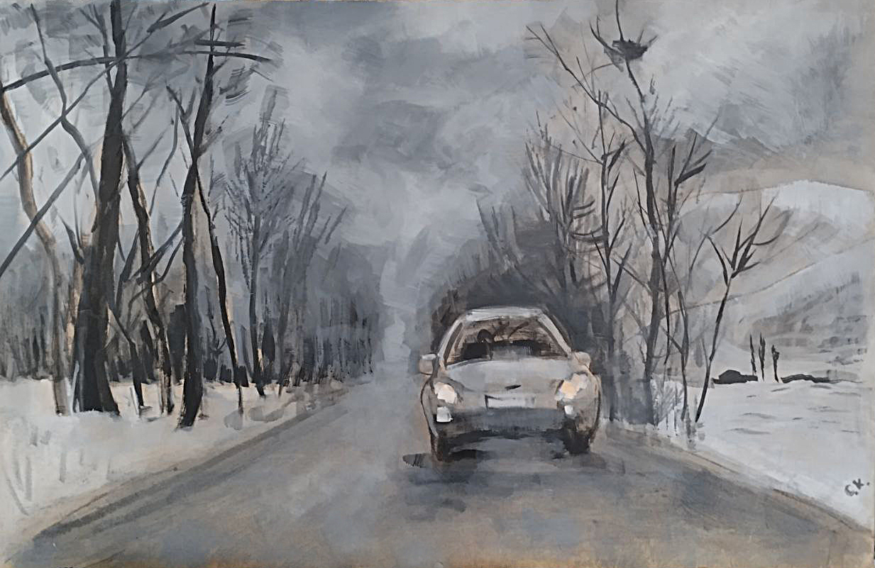 На берегу озера в лучах заката сверкает поворот направо, а слева тянется набережная, манящая к озеру. Однако, знак запрещает поворот налево. Картина намекает на всю условность человеческих правил на фоне восхитительного заката.